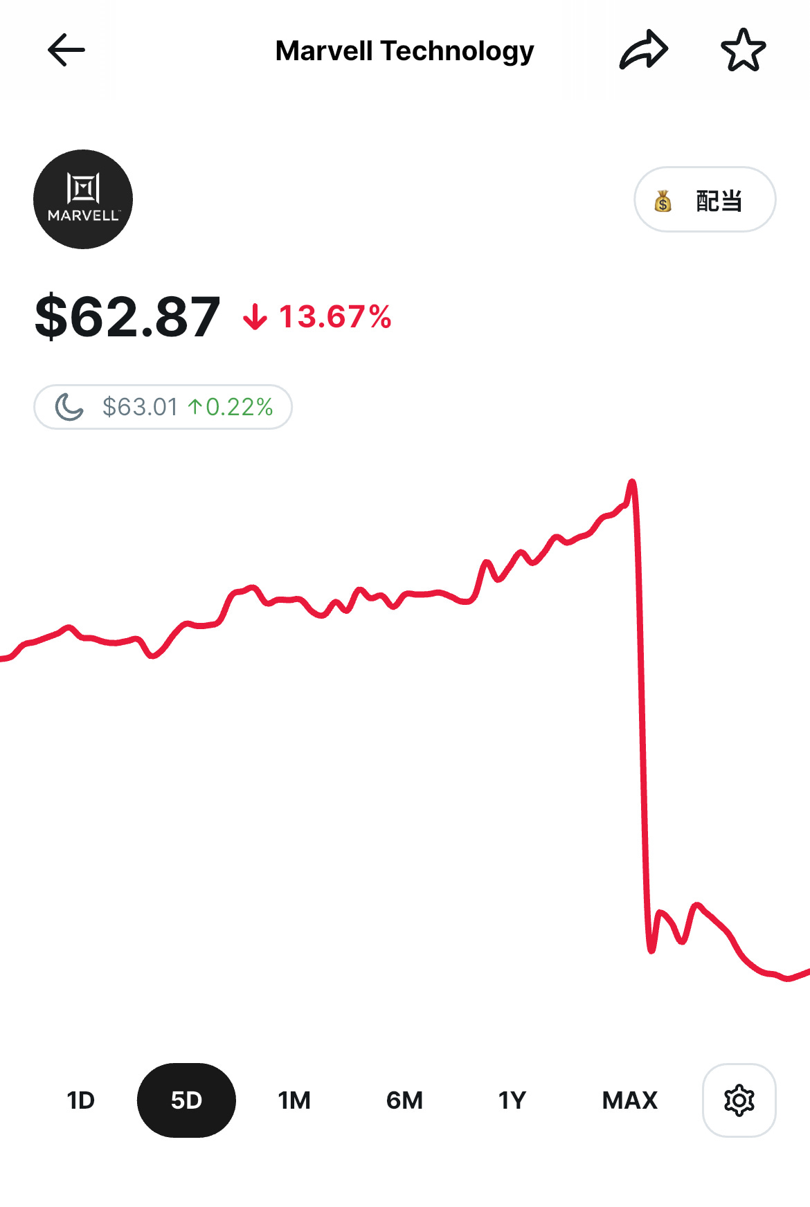 マーベルの過去5日間の株価 / woodstock.club