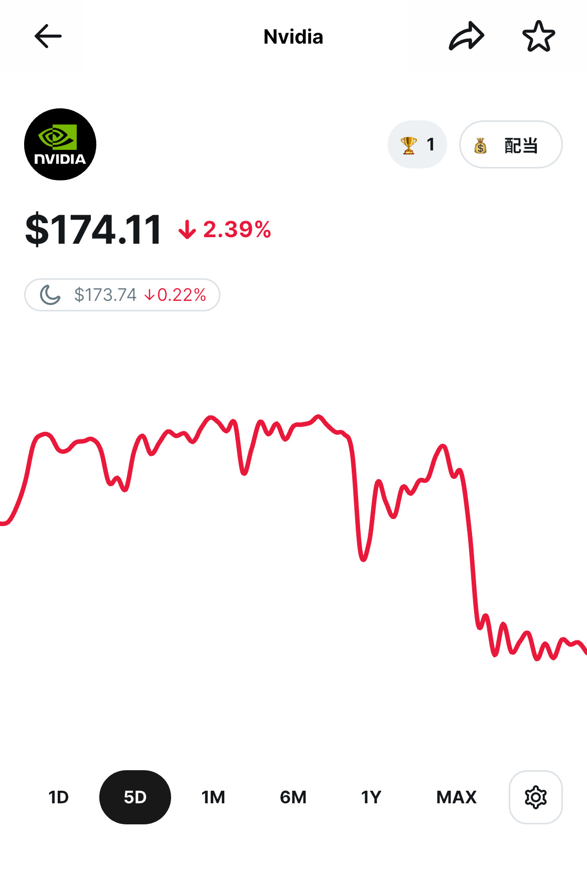 NVIDIAの過去5日間の株価 / woodstock.club