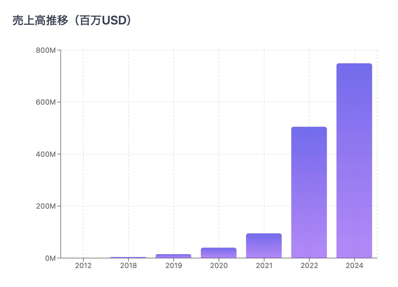 以下はFigmaの年間売上高の推移です。