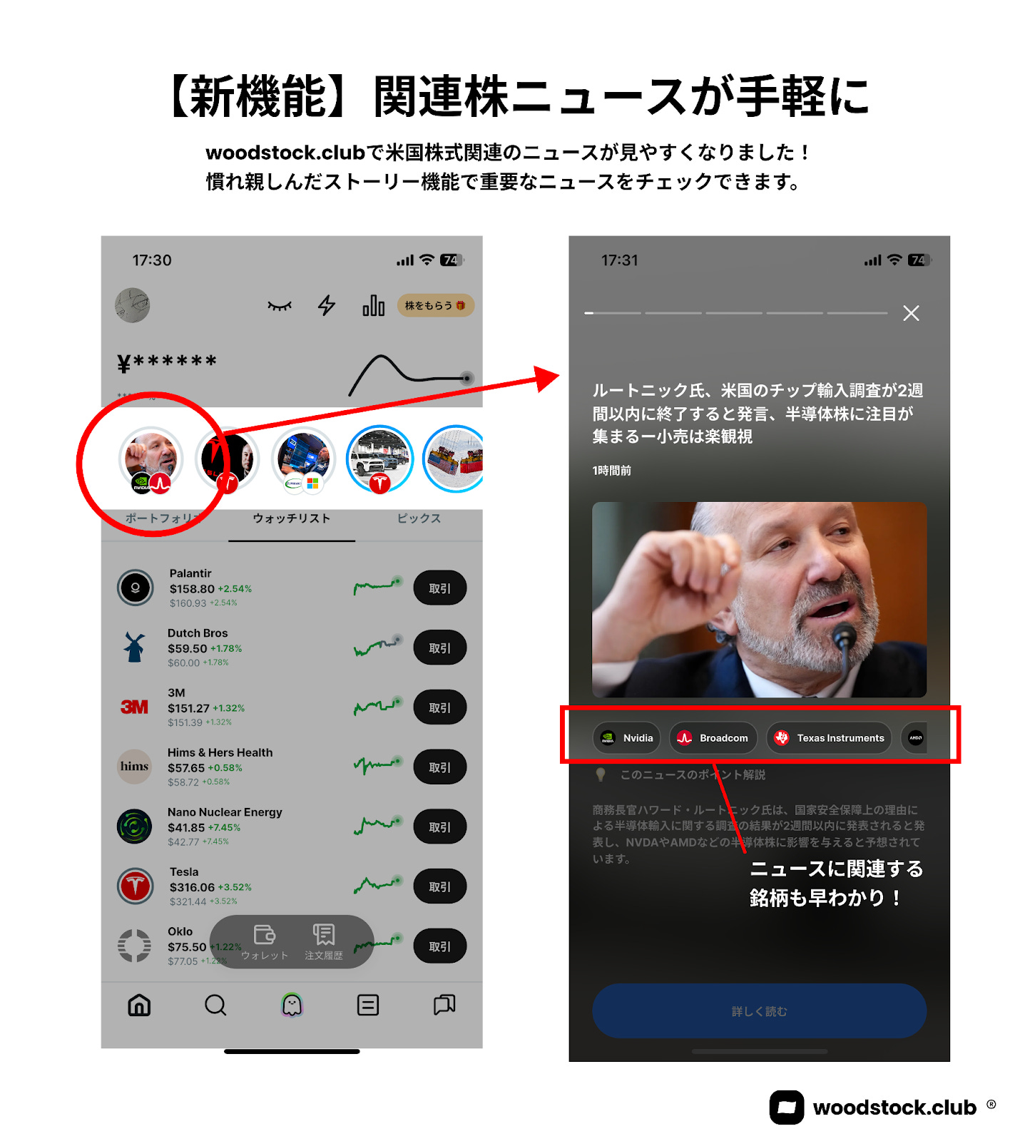 woodstock.clubにまた新機能が実装されました!米国株関連のニュースをストーリー機能によって読むことができるようになりました。これにより、米国株式の情報をより手軽に手に入れることができるようになります。