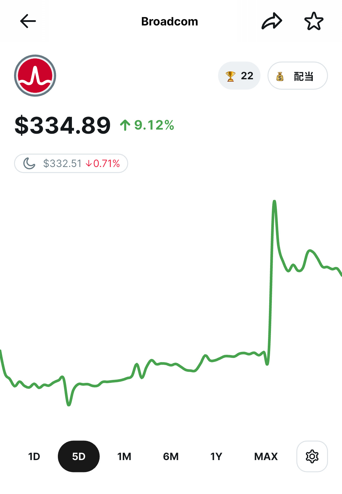 過去5日間のブロードコムの株価 / woodstock.club