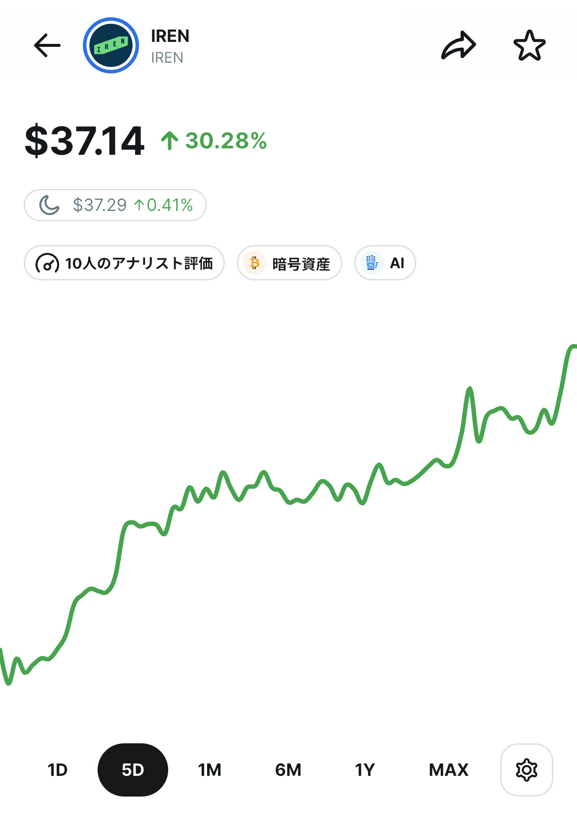 報道を受け、ビットマインの株価は5日間で約17%の上昇しています。
